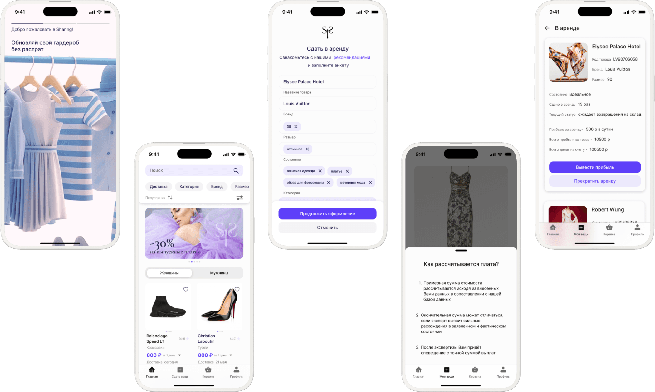 We worked in a group, brainstormed the idea, functionality and informational structure. I created the interactive high-fidelity prototype for the Rent-An-Item userflow, as well as the logo, main screen, item cards and initial animation.