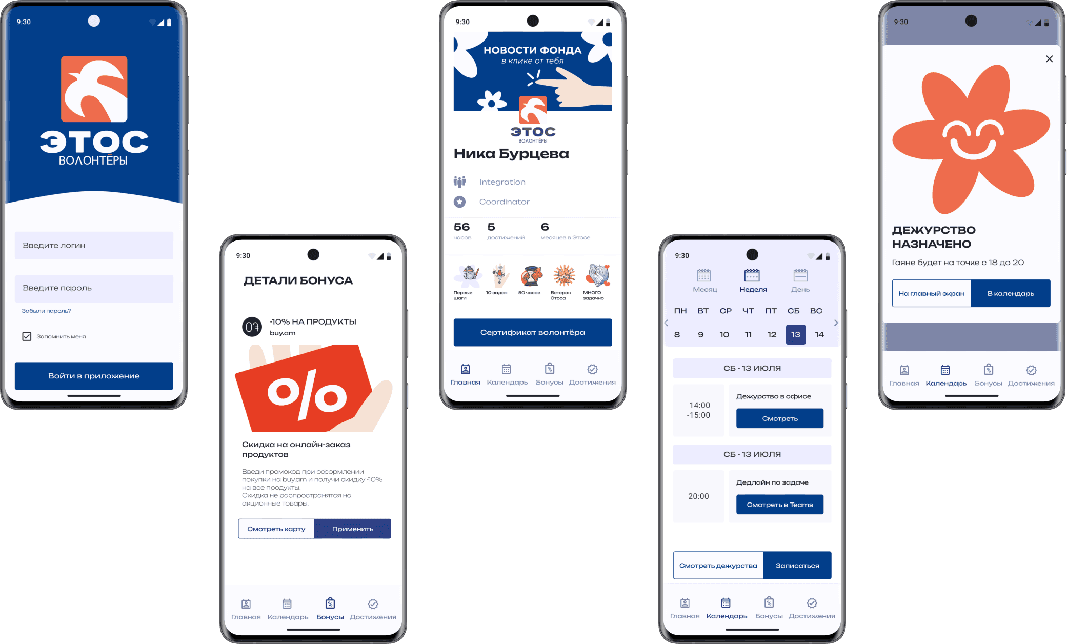 I’ve done several UX researches including volunteer palls, coordinator interviews and pall to study the pains and needs of the target audience. On this basis, I’ve created the informational structure, main userflows, wireframes and interactive high-fidelity prototypes. After the general redesign of Ethos Foundation, I’ve redesigned the app and added more functionality. I’ve also created a set of illustrations for achievements section, and initial animation.