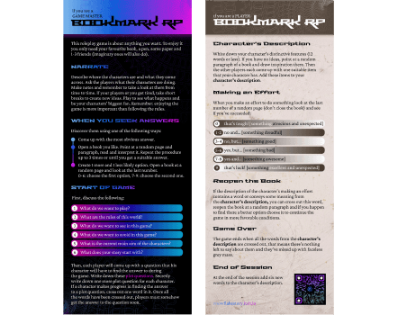 I’ve translated and edited the text, then created the graphic design for a mini role play game, which can also serve as a bookmark and use any book as settings.